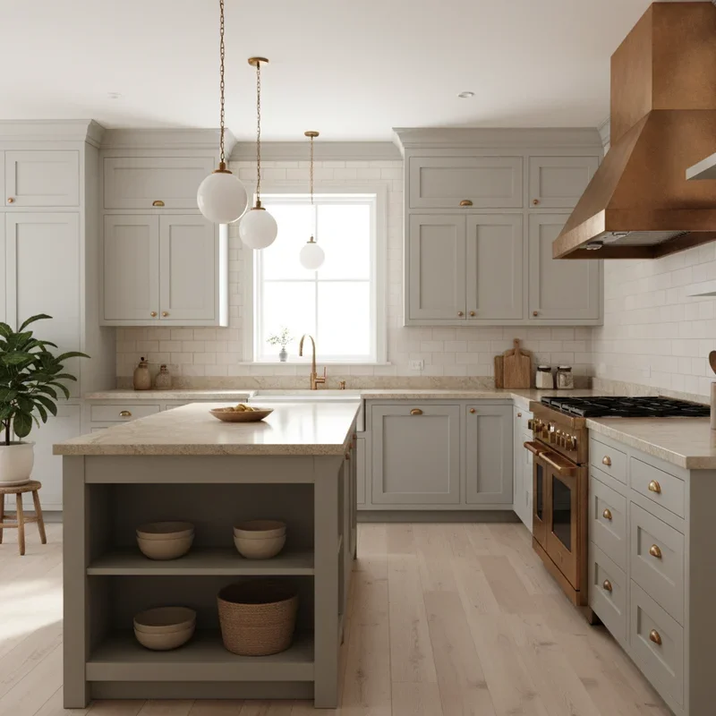 Hardware might seem like a small detail, but it's actually the jewelry that completes your kitchen's outfit! Warm finishes like brushed brass, antique bronze, or copper instantly add coziness to neutral cabinets, creating focal points that draw the eye without overwhelming. These finishes develop beautiful patinas over time, adding character that grows richer with age. Consider mixing knobs and pulls for added interest, using pulls on drawers and knobs on doors for both function and style. The warmth of these metals plays beautifully against cool marble countertops or warm wood accents, bridging different elements in your kitchen. Don't forget about your faucet, light switches, and outlet covers; coordinating these details creates a cohesive look that feels intentional and polished.