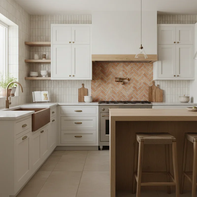 Your floor grounds everything else in your kitchen, literally and figuratively, so choosing warm-toned options creates an inviting foundation for your neutral scheme. Light oak hardwoods bring natural warmth while making spaces appear larger, their grain patterns adding subtle visual interest underfoot. Large-format porcelain tiles in warm gray or beige offer durability with the look of natural stone at a fraction of the cost. Consider luxury vinyl planks that mimic wood perfectly while standing up to spills and heavy traffic. The warmth of your flooring affects how all other elements in your kitchen appear, influencing everything from cabinet color perception to lighting quality. Add a vintage-style runner in neutral tones for extra comfort while cooking and to define specific zones within open-plan spaces.