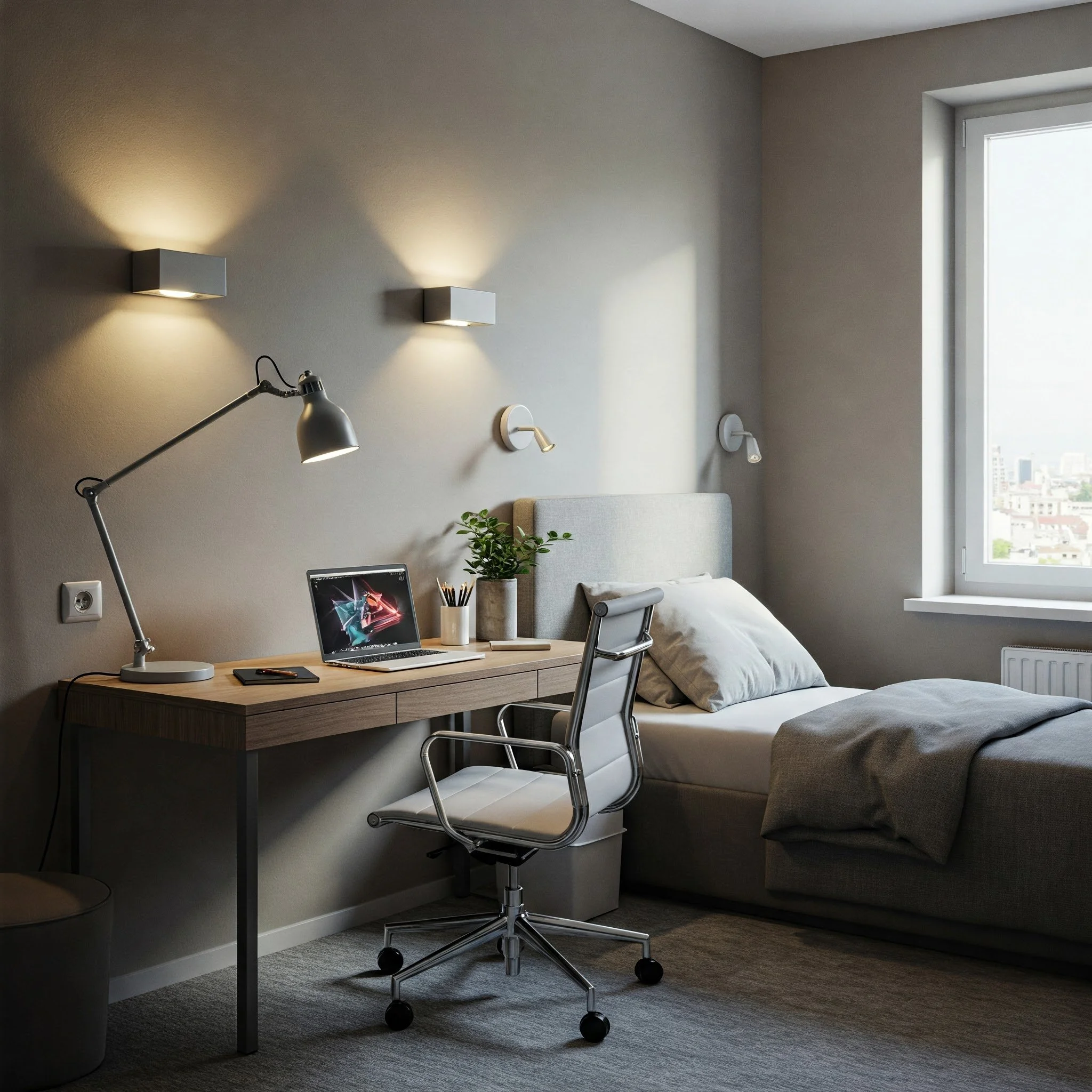 Layer your lighting. Use a bright, focused lamp for desk work, overhead or recessed lighting for general illumination, and softer ambient lights or bedside lamps for evening relaxation. This lets you adjust the vibe as needed.