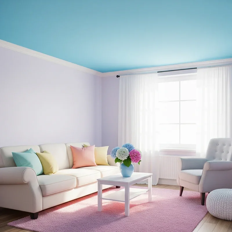 Look up and imagine clouds floating across a baby blue ceiling that transforms your room into an indoor sky! This unexpected pastel placement draws eyes upward, making rooms feel taller and more spacious while adding whimsy without overwhelming. The fifth wall deserves love too, and baby blue creates the illusion of openness that white ceilings can't match. This technique works beautifully in bedrooms where you'll actually spend time looking up, creating a calming vista for bedtime contemplation. Enhance the effect with cloud-like light fixtures or subtle star stickers for children's rooms. The color reflects light differently throughout the day, creating dynamic visual interest from dawn to dusk. Pair with white or cream walls to maintain airiness, or go bold with complementary pastel walls for full immersion. This simple change costs the same as painting any wall but delivers unexpected delight every time you enter.