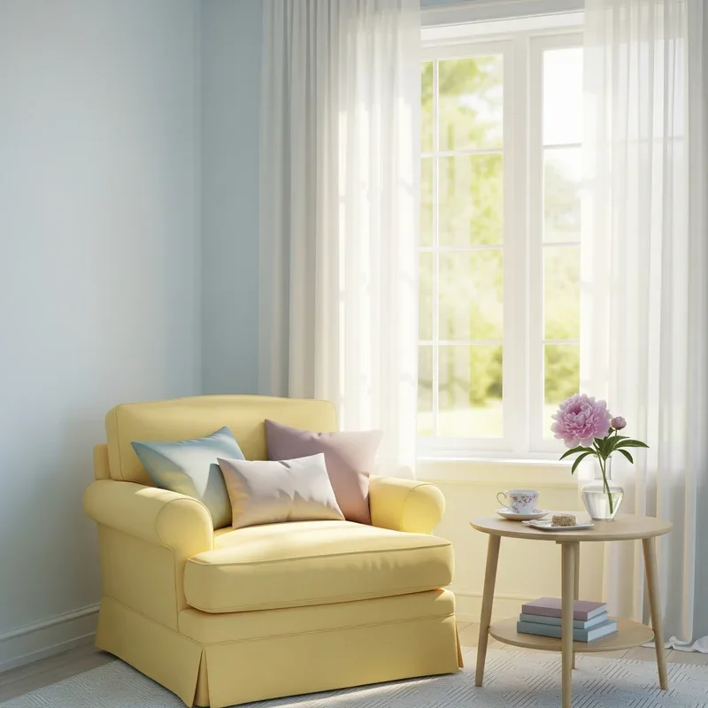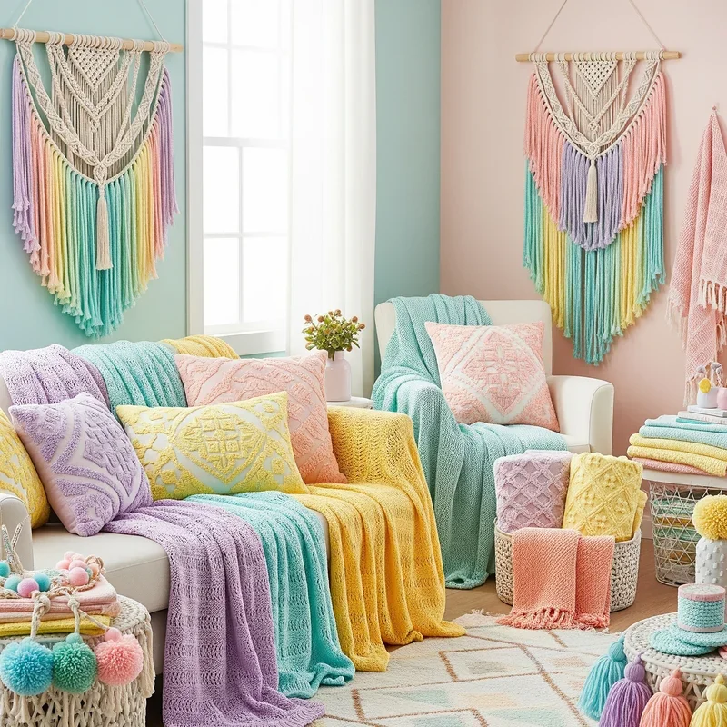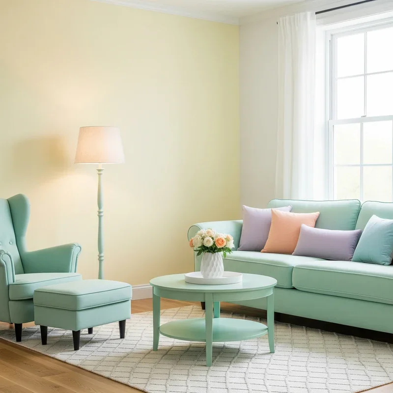 Textiles offer the easiest entry into pastel paradise, allowing color experimentation without permanent commitment! Layer throws in mint, pillows in lavender, and rugs in blush for an instantly softened space that can change with seasons or moods. The key lies in varying textures: smooth cotton, nubby linen, plush velvet, and chunky knits all reflect light differently, creating visual richness despite the gentle color palette. Don't match everything; controlled chaos through mixed patterns in similar pastel tones creates that collected-over-time feeling. Bedding becomes your canvas: start with white sheets, add a dusty pink duvet, layer with sage green throws, and top with yellow accent pillows. Window treatments in sheer pastels filter light beautifully, casting colored shadows that enhance the dreamy atmosphere. This approach allows gradual room transformation, perfect for renters or commitment-phobes who want flexibility without sacrificing style.