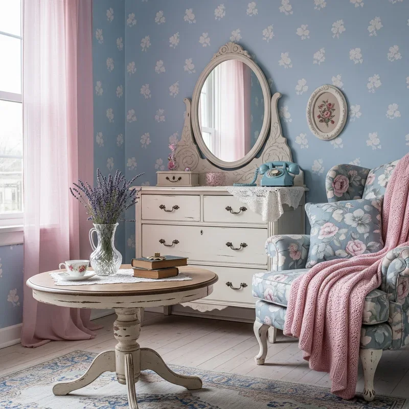 Transport your room to a gentler era with powder blue vintage elements that blend nostalgia with contemporary comfort! This classic pastel shade adorns vintage furniture beautifully, whether original mid-century pieces or flea market finds given new life. A powder blue vintage vanity becomes a bedroom focal point, while retro kitchen chairs in this shade brighten dining spaces. Mix authentic vintage with modern reproductions for budget-friendly authenticity. The color's timeless quality means it works with various vintage eras: Victorian, Art Deco, or 1950s atomic style. Pair with brass hardware and white accents for classic appeal, or add pink for sweetness. Vintage mirrors with powder blue frames reflect light while adding character. This shade photographs beautifully, giving rooms that sought-after vintage filter naturally. The nostalgic feeling powder blue evokes creates emotional comfort, making spaces feel like cherished memories.