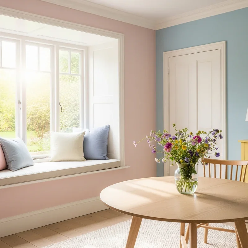 A: Light pastels like blush, mint, and powder blue reflect light and expand space.