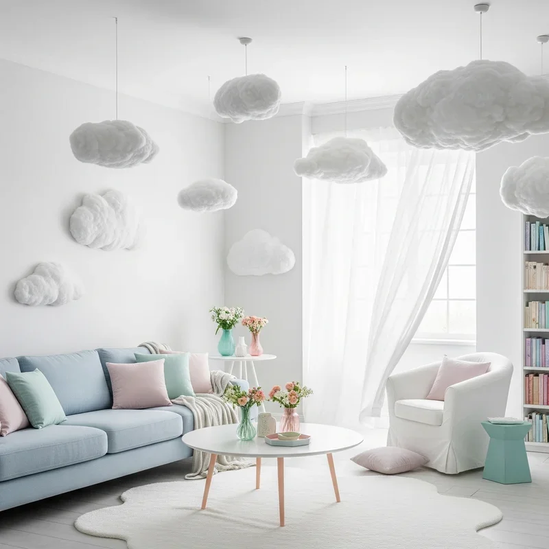 Create the ultimate dreamy environment with cloud-white bases punctuated by floating pastel accents that appear like rainbow glimpses through clouds! Start with white everything: walls, major furniture, flooring if possible. Then add pastel elements strategically, like colorful drops in a white canvas. A single blush chair, mint lamp, or lavender artwork becomes more impactful against white backdrops. This approach offers maximum flexibility; swap pastel accents seasonally or when inspiration strikes. White reflects and amplifies pastels, making small color additions feel significant. Layer white textures to prevent sterility: white fur, linen, cotton, and wool create depth despite color absence. The psychological impact creates feelings of possibility and peace, like living inside a cloud. This technique particularly suits small spaces where too much color might overwhelm. Your room becomes a calm sanctuary where pastel moments provide gentle stimulation without disrupting serenity.