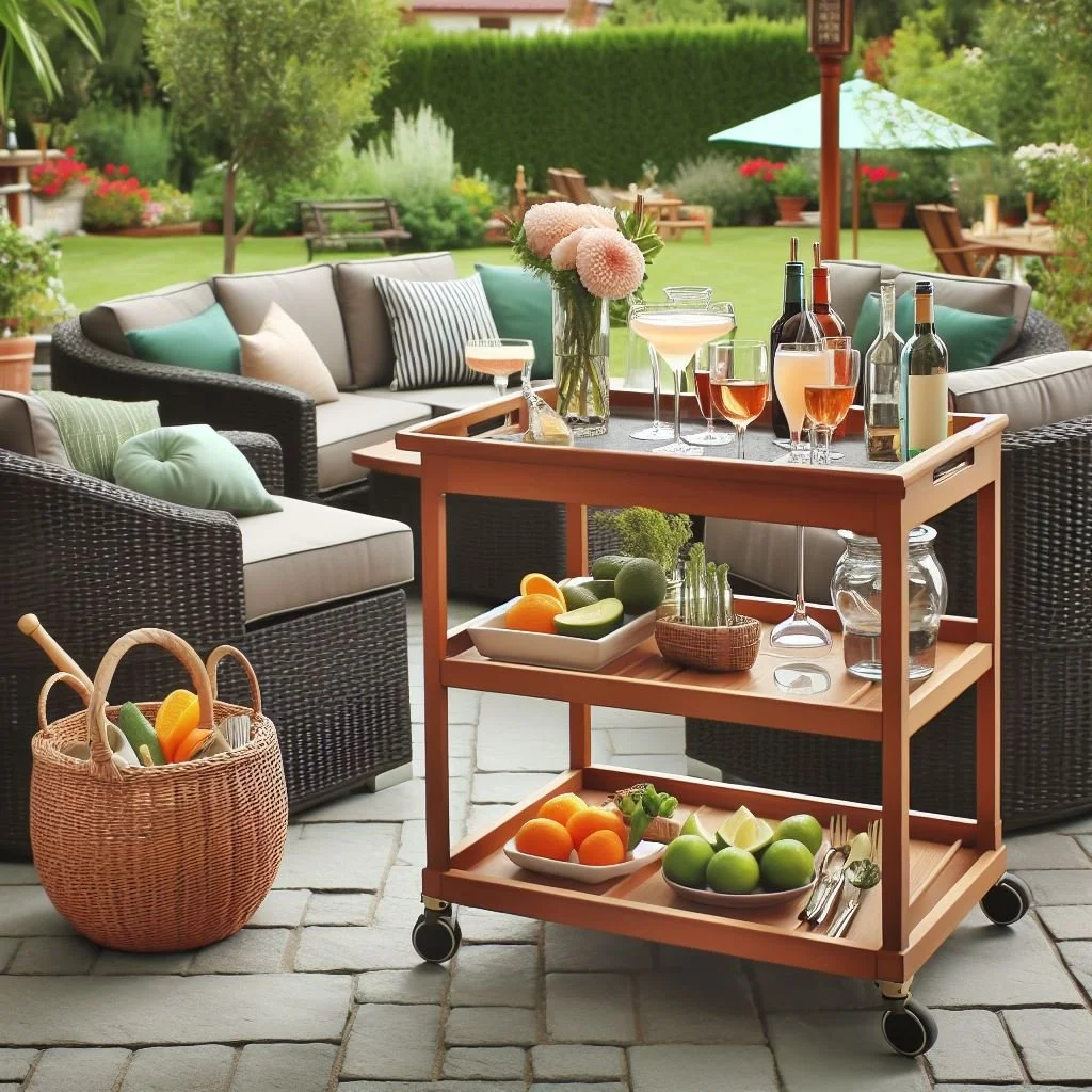 Elevate your outdoor entertaining experience by introducing a stylish cocktail bar cart, adding both functionality and flair to your patio gatherings. Choose a cart with weather-resistant materials like stainless steel or powder-coated aluminum to withstand outdoor conditions. Stock it with essential barware, spirits, and mixers for a portable and convenient setup. The versatility of a bar cart allows you to effortlessly move the libations to various seating areas, ensuring that refreshments are always within reach. Whether hosting a soirée or enjoying a quiet evening, a well-equipped cocktail bar cart becomes a chic focal point, enhancing the ambiance and making outdoor entertaining a delightful and sophisticated affair.