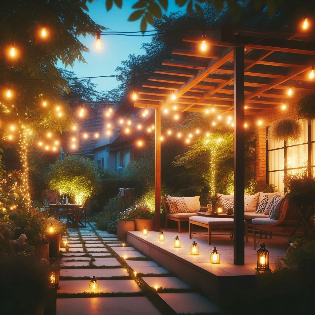 String lights can be draped along fences or suspended overhead to create a warm and inviting atmosphere.