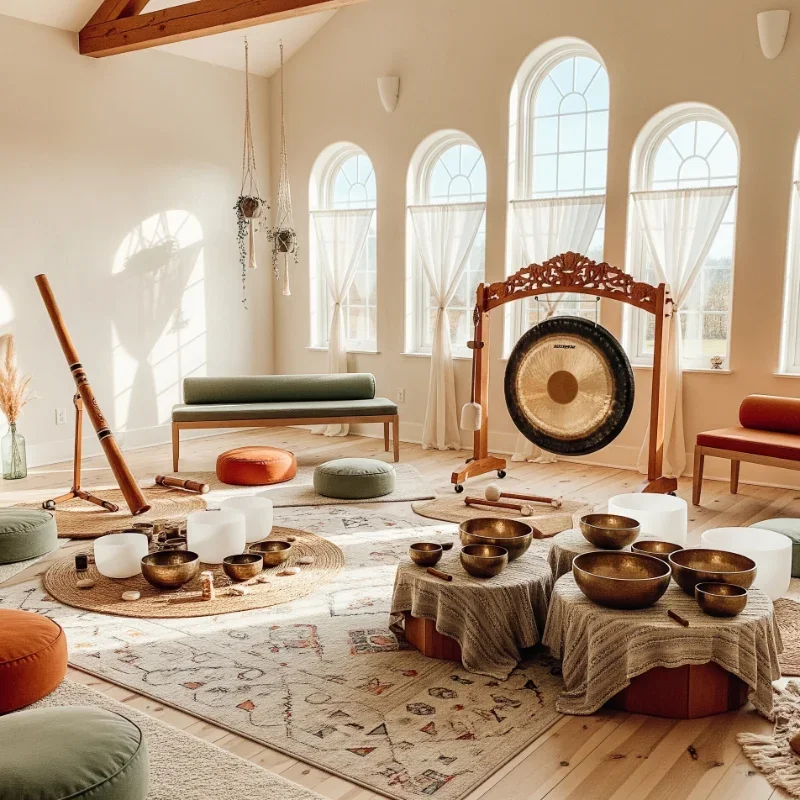 Design your prayer space around acoustic elements that enhance spiritual practice through therapeutic sound vibrations. Singing bowls, bells, and chimes create resonant tones that induce meditative states and clear negative energy. Sound-absorbing panels or tapestries prevent echo while maintaining clear acoustics for chanting or prayer recitation. A small speaker system allows you to play spiritual music, nature sounds, or guided meditations. Tibetan bowls placed around the room can be struck to mark prayer beginnings and endings. The strategic placement of sound instruments makes them accessible without cluttering the space. Consider a white noise machine to mask disruptive outside sounds during prayer times. This audio-focused design recognizes that spiritual connection often comes through listening as much as speaking.