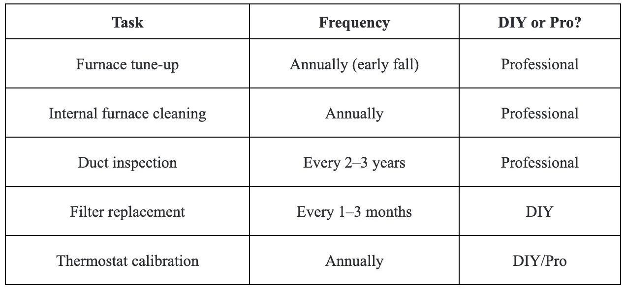 For a clearer overview, here’s a quick checklist of pre-winter furnace prep tasks:
