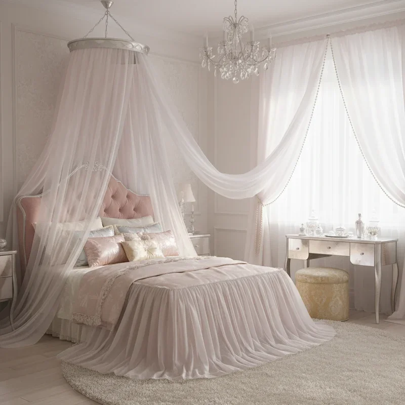 Windows frame views to the outside world, but they also deserve beautiful treatment! Sheer curtains in soft colors filter light while maintaining privacy. Layer them with heavier drapes featuring princess patterns or colors that can close for darkness during nap time. Valances shaped like scalloped edges or adorned with tassels add polish. Create a window seat beneath using cushions and pillows, transforming the space into a cozy reading spot or daydreaming destination. Hang decorative curtain tiebacks shaped like flowers, butterflies, or ribbons. Window clings featuring castles, butterflies, or flowers add privacy while allowing light through. Consider curtain rods with decorative finials shaped like crowns or orbs. Café curtains covering just the lower half of windows offer privacy while maximizing natural light. Beautiful window treatments finish the room while serving practical purposes!