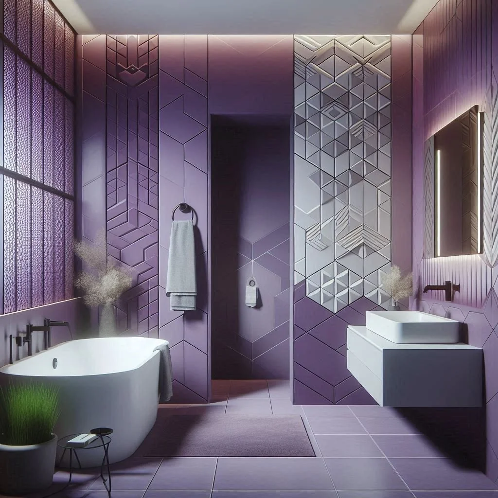Incorporate purple tiles into your bathroom design to add texture and a touch of luxury. Whether you choose a full wall of mosaic tiles, a purple-tiled shower, or just a backsplash, these tiles can transform the space. Glossy purple tiles create a sleek, modern look, reflecting light and adding a vibrant pop of color. On the other hand, matte tiles offer a more understated elegance, providing a subtle and sophisticated charm. Pair purple tiles with neutral elements like white fixtures and natural wood accents to balance the bold color and create a harmonious, stylish bathroom.