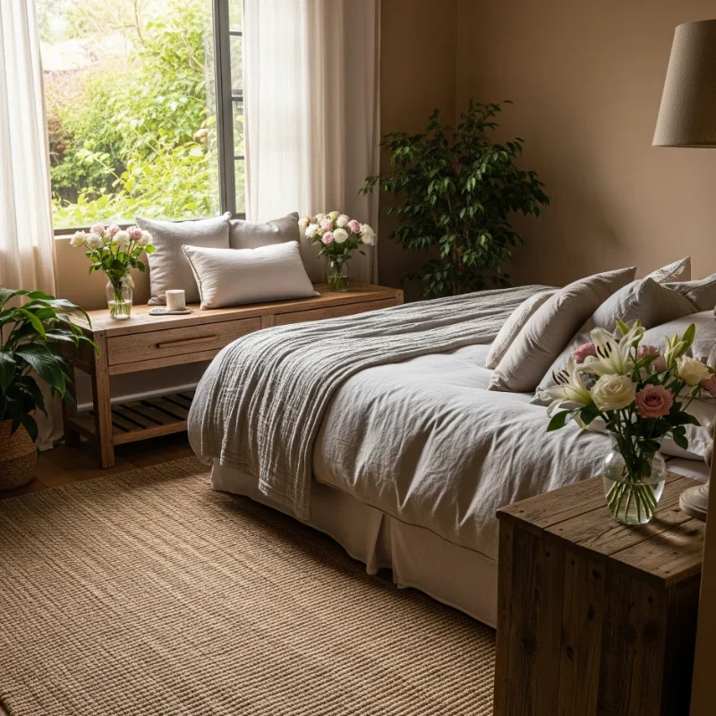 Bring life and romance into your bedroom with the timeless beauty of fresh flowers and natural touches! A vase of roses on the nightstand sets classic romantic tones, but don't limit yourself. Peonies offer lush fullness, while jasmine provides intoxicating fragrance. Change flowers weekly to maintain freshness and variety. If fresh flowers strain budgets, invest in high-quality silk arrangements or potted plants like orchids that bloom repeatedly. Incorporate other natural elements: smooth river stones in glass bowls, driftwood sculptures, or air plants in hanging globes. These elements connect you to nature's calming influence while adding organic beauty. Position flowers where you'll see them upon waking for instant mood lifting. Consider seasonal branches in tall vases for dramatic height. Natural elements remind us of growth, renewal, and life's beautiful cycles, perfect metaphors for romantic relationships!