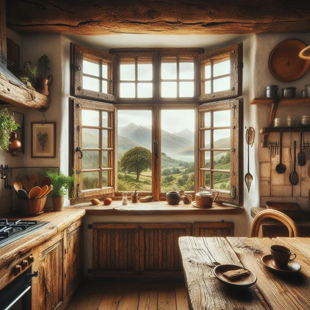 Frame your kitchen views with rustic window frames, creating a seamless connection between the indoors and the outdoors. Choose weathered wooden frames that evoke a sense of countryside charm, enhancing the natural beauty that lies beyond your windows. These rustic frames not only serve as aesthetic elements but also act as portals to nature, allowing ample natural light to flood your culinary space. Whether overlooking a garden, scenic landscapes, or a cozy backyard, the framed views become a picturesque backdrop for your kitchen. This design choice not only embraces the timeless appeal of rustic aesthetics but also fosters a sense of tranquility and openness in your culinary haven.