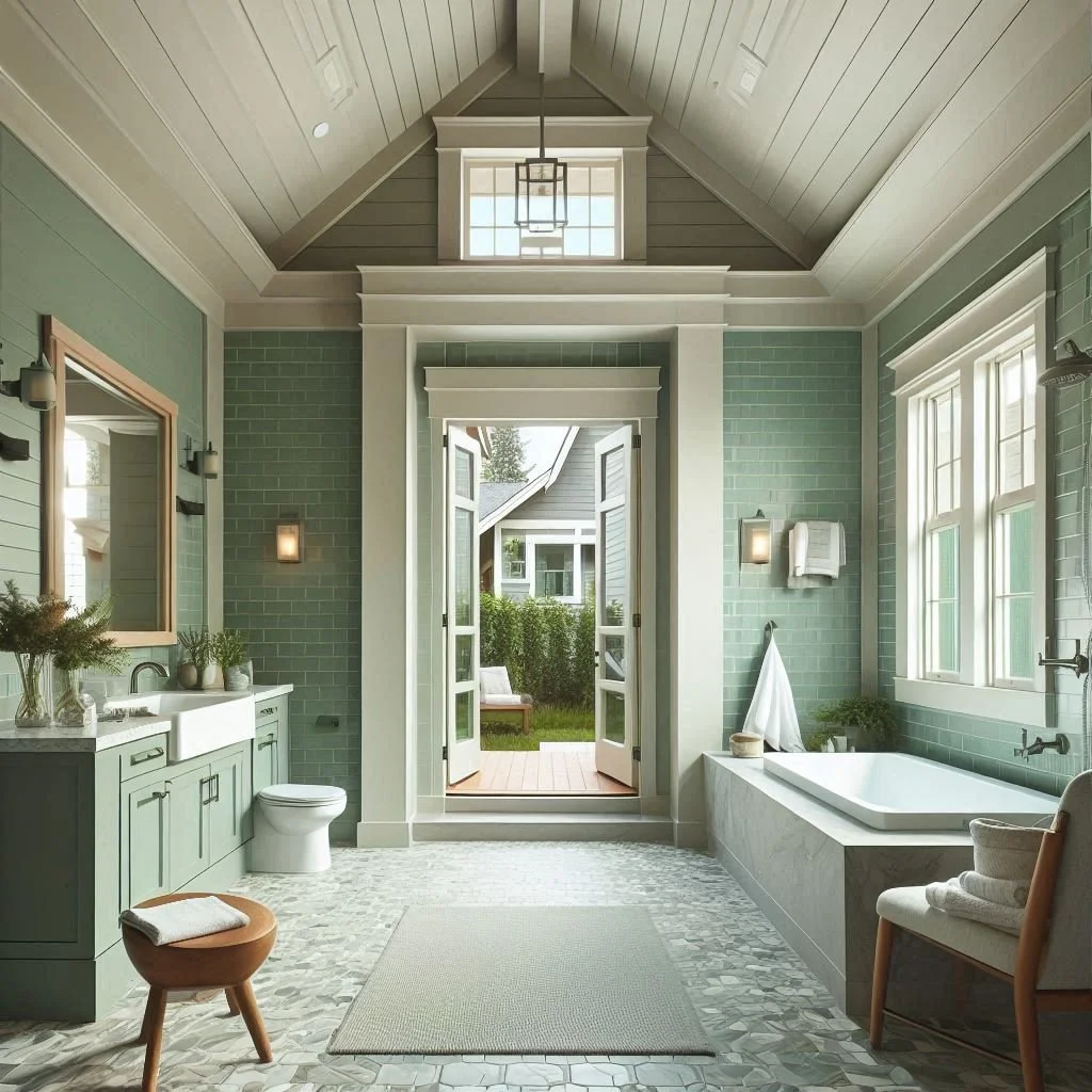Transform your bathroom into a serene spa-like retreat with sage green tiles. Whether you opt for sleek subway tiles or intricate mosaic patterns, this earthy hue creates a calming and rejuvenating atmosphere. Sage green tiles pair beautifully with neutral tones like white or beige, making the space feel bright and inviting. For a modern touch, use them as a backsplash or accent wall in the shower, or cover the entire wall for a bold statement. The soothing tones of sage green evoke a sense of nature, bringing a tranquil vibe to your daily routine. Complete the look with natural materials like wood or stone, along with soft, plush towels to achieve a perfect balance of elegance and relaxation.