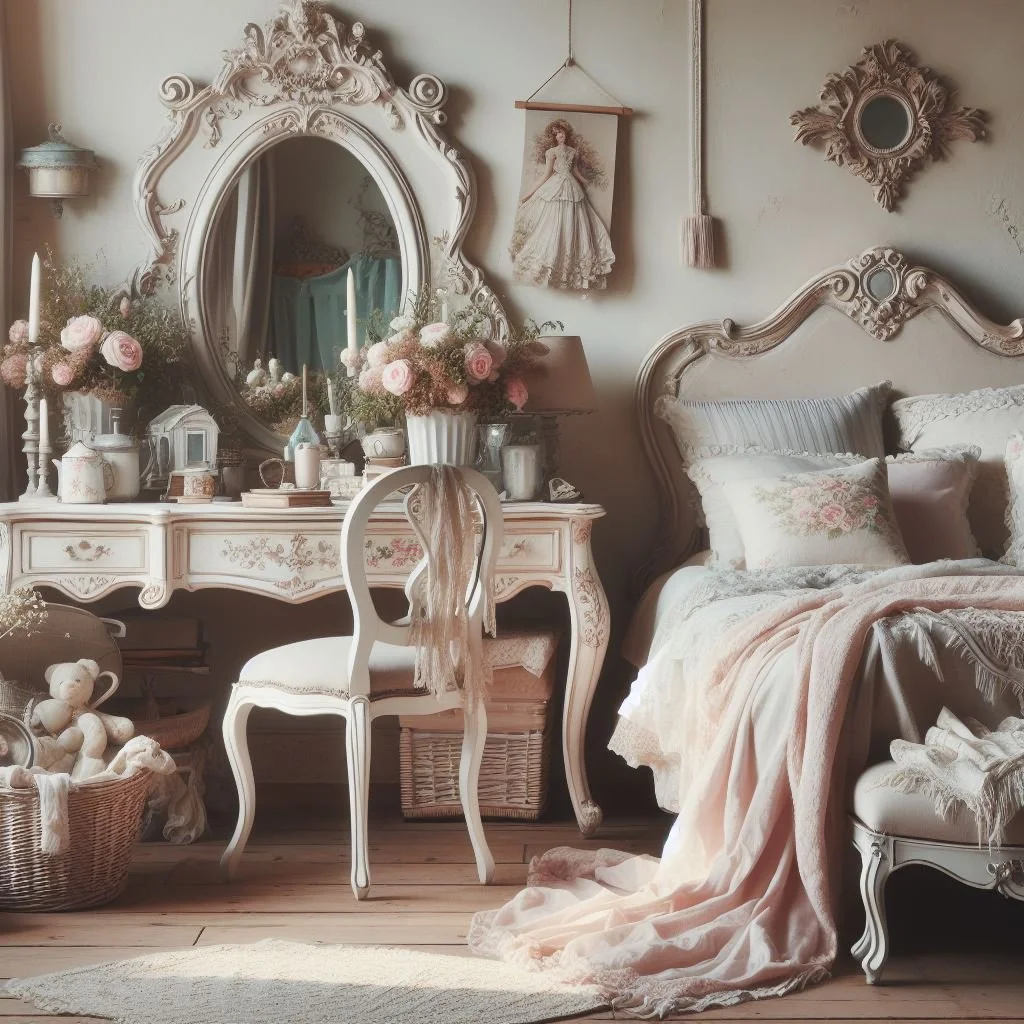 How can I make a small bedroom feel more spacious with shabby chic decor?