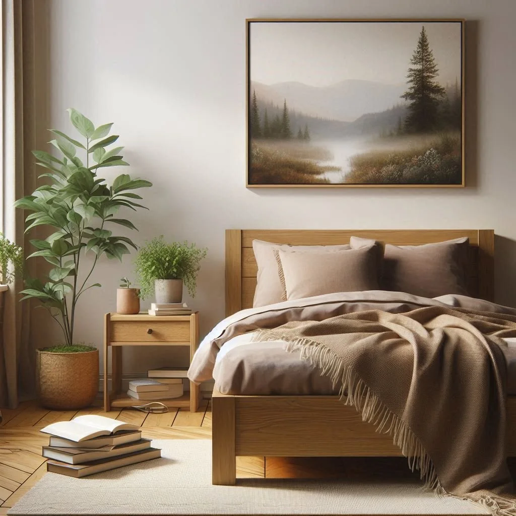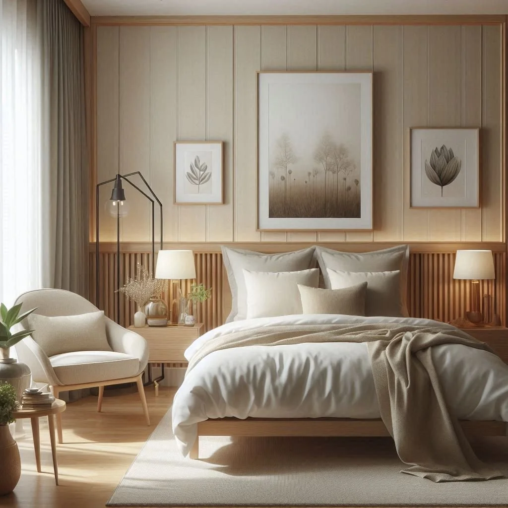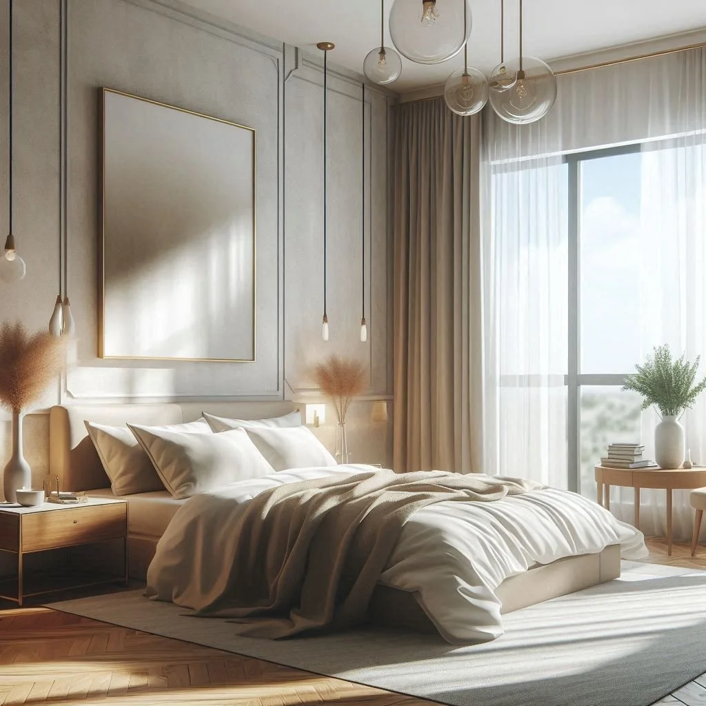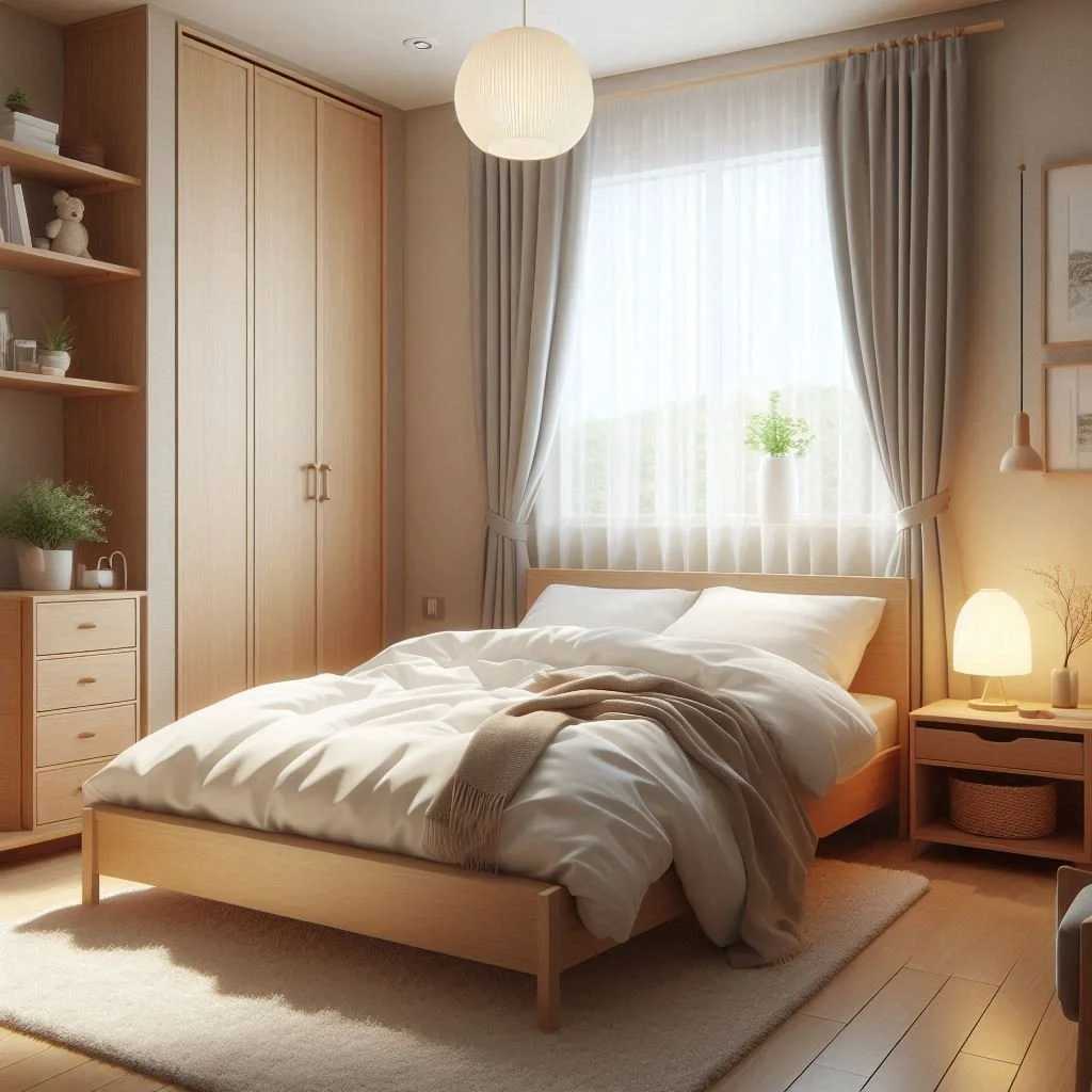 High-thread-count cotton or linen sheets, a plush duvet, and a mix of firm and soft pillows create a comfortable and inviting bed. Opt for neutral or pastel colors to enhance the cozy feel.