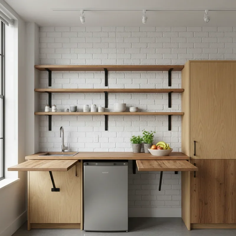 Imagine having a dining table that disappears when you don't need it! Fold-down tables, also called drop-leaf or wall-mounted tables, are absolute game-changers for studio kitchens. These clever solutions attach to your wall and fold flat when not in use, taking up virtually no space. When you need extra prep area or a spot to enjoy your morning coffee, simply flip it down. Some models even include storage compartments or built-in wine racks. Think of them as transformers for your kitchen, shifting from invisible to indispensable in seconds. You can install them at counter height for food preparation or lower for dining. Many designs look stylish enough to enhance your decor even when folded up. This flexibility means you're never sacrificing functionality for space, making every square inch count.