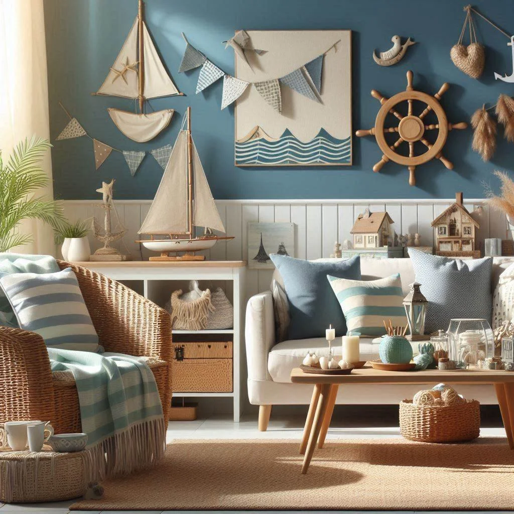 To capture the essence of a beachside retreat, incorporate subtle nautical decor that brings the coastal vibe into your home. Think navy blue and white stripes, anchors, or even a few seashells to evoke the feeling of the ocean. You don’t need to completely transform your space into a seaside haven—small, thoughtful touches can go a long way. A navy throw pillow on your sofa, a striped rug on the floor, or a decorative anchor on the wall can instantly add a fresh, beachy charm. These simple additions create a laid-back, airy atmosphere reminiscent of a coastal getaway without overwhelming the room. Whether it's through textiles, artwork, or small accessories, nautical elements can bring a relaxing seaside feel to your space, perfect for summer.