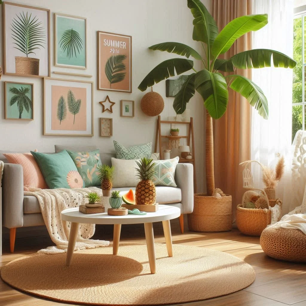 Summer decor is all about infusing your home with a sense of relaxation and tropical paradise. Tropical accents bring vibrant colors and playful patterns that instantly evoke the carefree vibe of summer. Think lush greens, leafy motifs, and fun details like pineapple or flamingo designs to add a touch of whimsy. You don’t need to overdo it—sometimes, a few well-placed accents are all it takes to create a summery atmosphere. Consider adding tropical throw pillows to your sofa or a bold palm leaf print on the wall as a statement piece. These small touches can transform your space, giving it an airy, fresh feel that makes you feel like you’re on vacation, no matter where you are.