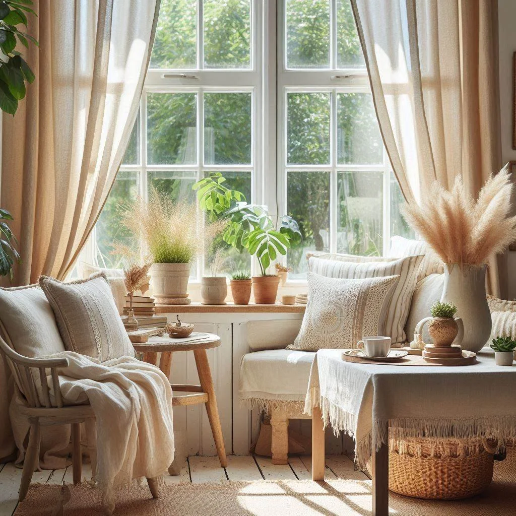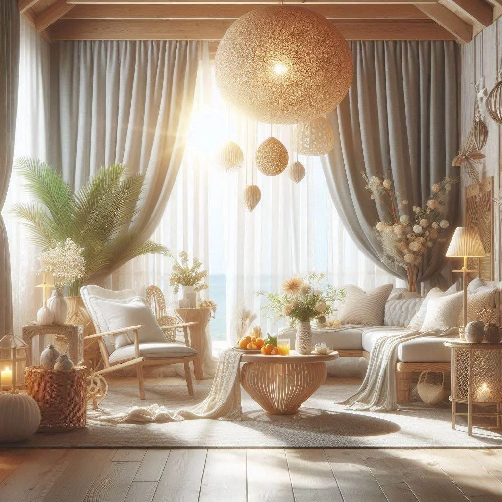 To capture the light and breezy feel of summer, consider switching to light, sheer curtains that let the sunshine pour into your home. These soft, airy fabrics allow natural light to filter through, creating a warm and welcoming ambiance in any room. Opt for white or pastel-colored curtains, as these hues beautifully complement the sunlight and help create a relaxed, summery atmosphere. The lightness of the fabric allows the natural light to dance around your space, casting a soft, gentle glow throughout the room. This simple change transforms your home into a bright, positive retreat, enhancing the mood and bringing the outdoor warmth indoors. The result is a refreshing, airy ambiance that feels perfect for the season.