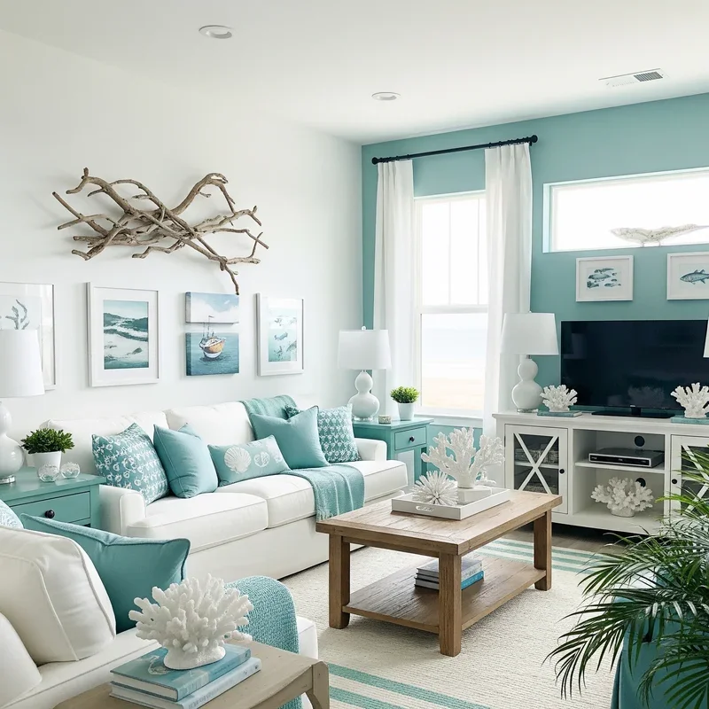 9. Teal and White Coastal Themes