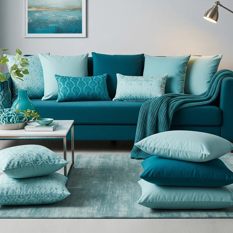 3. Layered Teal Textiles and Pillows