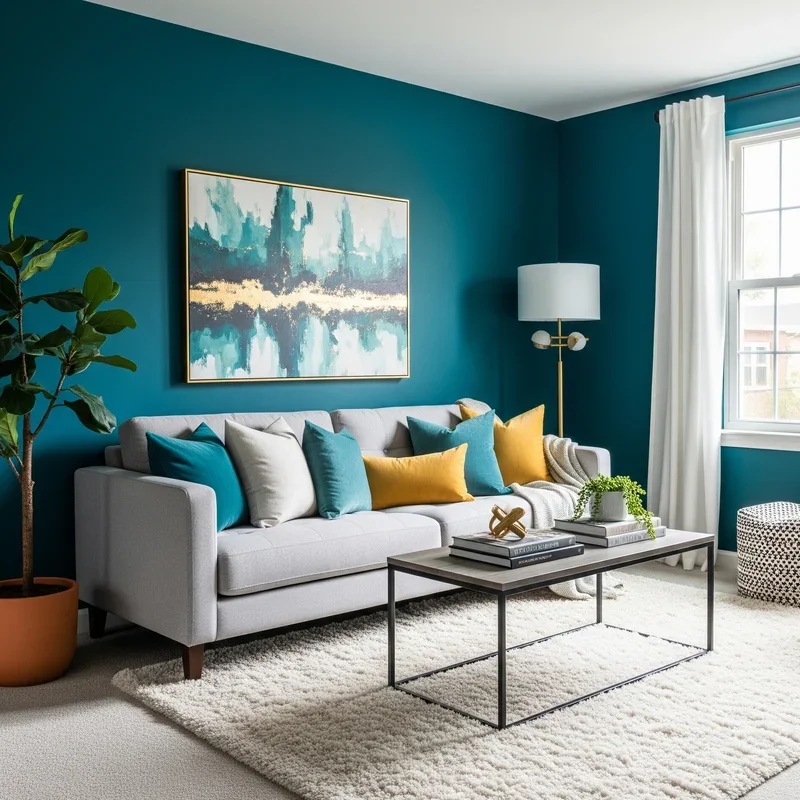 What if your living room could capture the mesmerizing depth of a peacock's feather or the tranquil beauty of tropical waters? That's the transformative power of teal, a color that dances between blue and green like nature's own masterpiece! This jewel tone has emerged from the shadows of "safe" neutrals to claim its rightful place as the sophisticated homeowner's secret weapon. Teal brings that rare combination of vibrancy and elegance, making spaces feel both energizing and calming simultaneously. Whether you're ready to dive into a full teal transformation or just want to dip your toes with strategic accents, this versatile hue adapts to any design personality. From rich, moody teals that create dramatic evening ambiance to lighter aqua variations that brighten morning coffee moments, there's a shade for every style story. Think of teal as your living room's passport to instant sophistication without the stuffiness. Ready to discover how this captivating color can revolutionize your living space?