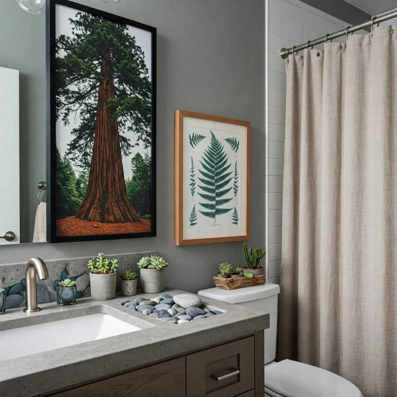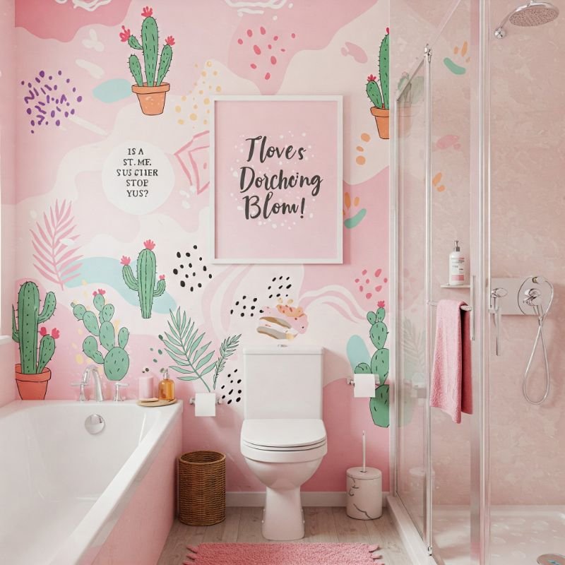 Your bathroom walls offer a blank canvas waiting for your personal touch, and customized wall art and decals are the perfect way to make a bold statement. Transforming the space into a gallery of self-expression, you can choose from a range of vibrant murals, inspirational quotes, or geometric patterns that resonate with your style. These artistic touches not only modernize the look of your bathroom but also create an atmosphere that is uniquely yours. Imagine decals that mimic urban graffiti or hand-painted accents that add a touch of whimsy to your surroundings. This idea encourages you to experiment with color, texture, and form, resulting in a dynamic environment that reflects your creative spirit. By infusing your bathroom with art, you not only enhance its aesthetic appeal but also craft a space that tells your personal story in a visually engaging way.