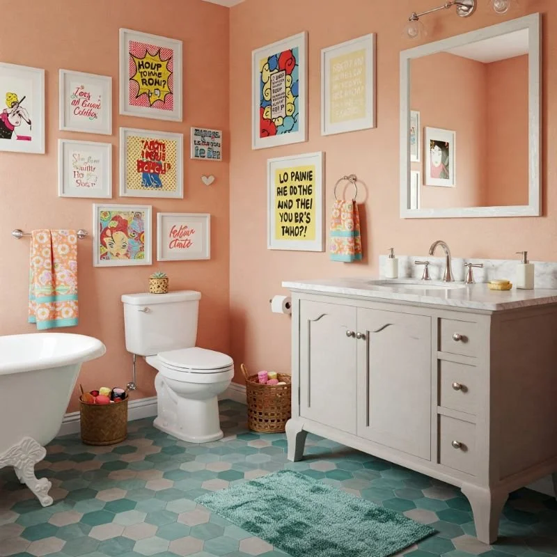 The floor of your bathroom is often overlooked, but funky floor tiles and patterns can serve as the foundation of a modern teen space. Bold, patterned tiles add a burst of personality and serve as a striking contrast to sleek fixtures and minimalist decor. Imagine stepping onto a floor that feels like a work of art—geometric designs, vibrant colors, or even playful mosaic patterns that create an energetic atmosphere. These innovative choices not only modernize your bathroom but also bring in a sense of fun and creativity. The right floor tiles can tie together all the elements of your design, giving the room a cohesive and youthful vibe. Whether you opt for high-gloss ceramic, textured porcelain, or even eco-friendly options, funky flooring becomes a canvas for self-expression and modern style. It’s the perfect way to leave a lasting impression every time you walk through the door.