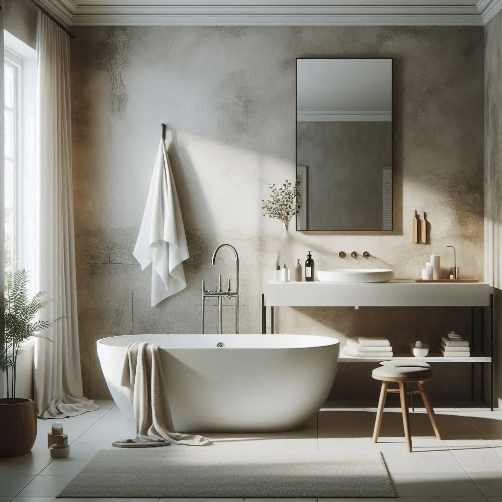 Natural stone, marble, and high-quality laminate that mimics these materials are great choices for achieving a timeless bathroom look.