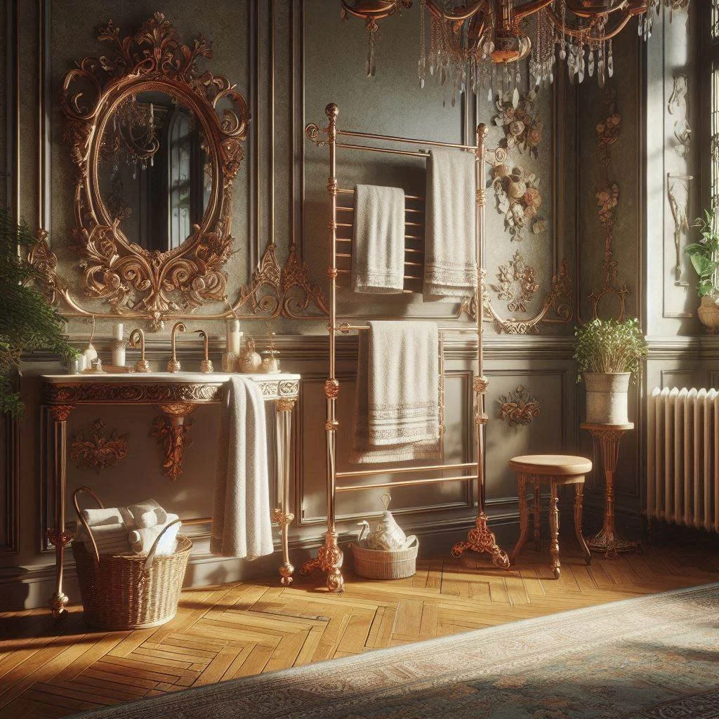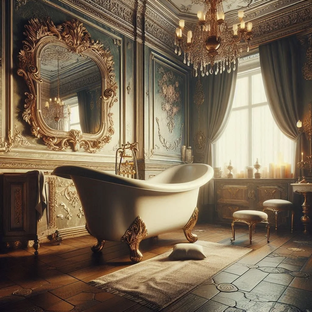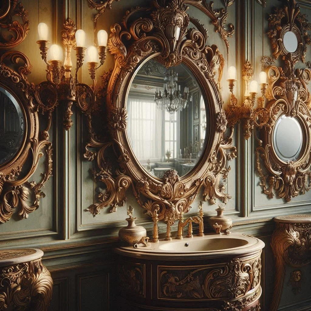 Bring a sense of history into your bathroom with ornate mirrors. Whether you opt for an intricately carved wooden frame or a sleek, gold-finished design, antique-style mirrors instantly elevate the look of your space. These mirrors serve as beautiful focal points when hung above your vanity or tub, adding a touch of elegance and drama. Beyond their aesthetic appeal, mirrors also reflect light, creating a sense of depth and openness—perfect for making smaller bathrooms feel more spacious and airy. The combination of vintage charm and functionality makes ornate mirrors a timeless addition to any bathroom, infusing it with character and a sense of refined history.
