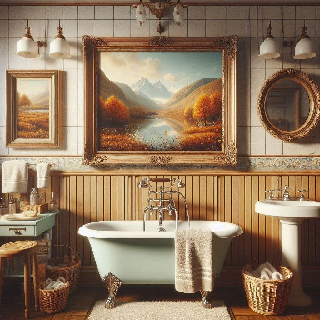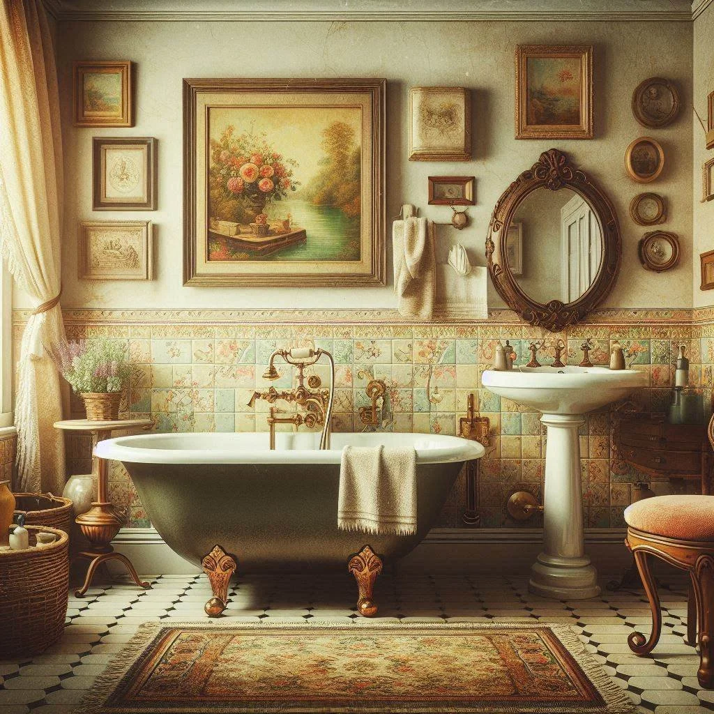 Start small by adding vintage-inspired accessories like mirrors, lighting fixtures, or vintage artwork. You can also update hardware and swap out modern faucets for brass or porcelain fixtures.
