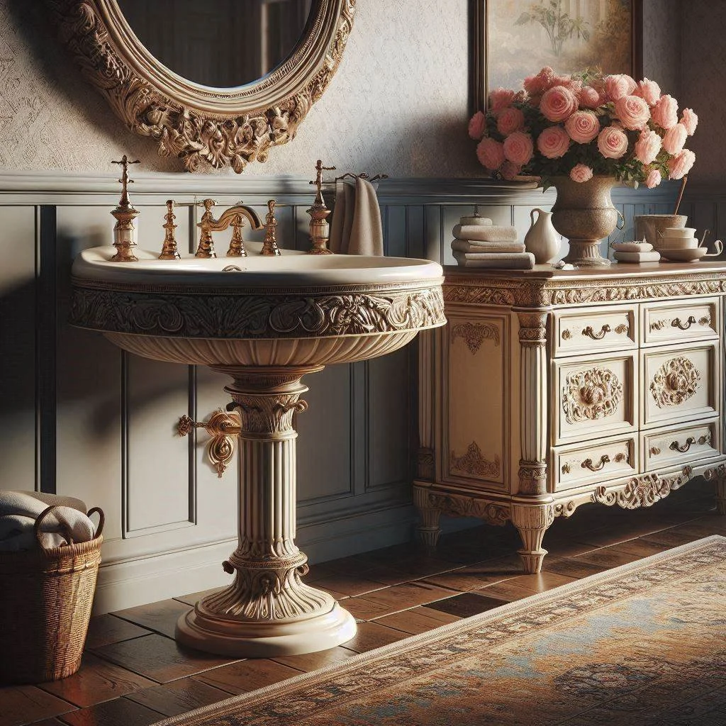 Opt for a pedestal sink if you're aiming for a truly classic vintage bathroom. These sinks bring both simplicity and charm, offering a sleek, space-saving design that doesn’t compromise on elegance. With their clean lines and sculpted bases, pedestal sinks provide a timeless look that’s perfect for smaller bathrooms, where freeing up floor space is key. Despite their minimalist design, they make a big impact, exuding vintage charm while allowing for more flexibility with other design elements like wallpaper or decorative mirrors. A pedestal sink is an ideal choice when you want to achieve a refined, old-world look without the bulk of traditional cabinetry, keeping the bathroom airy and inviting.