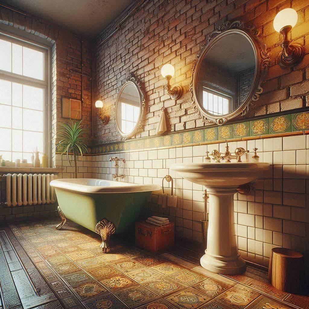 To fully capture the essence of a vintage bathroom, select a vintage-inspired color palette that evokes timeless elegance. Soft pastels such as mint green, blush pink, and powder blue are ideal for creating a romantic, old-world ambiance, infusing the space with a gentle, calming atmosphere. For a more dramatic effect, consider deeper hues like navy or emerald, which pair beautifully with brass or gold accents, adding a touch of opulence and sophistication. Whether you opt for light and airy pastels or rich, bold tones, the color palette will set the tone for a timeless, elegant bathroom that exudes charm and vintage allure. The right colors can transform the space, making it feel nostalgic yet refreshingly chic.