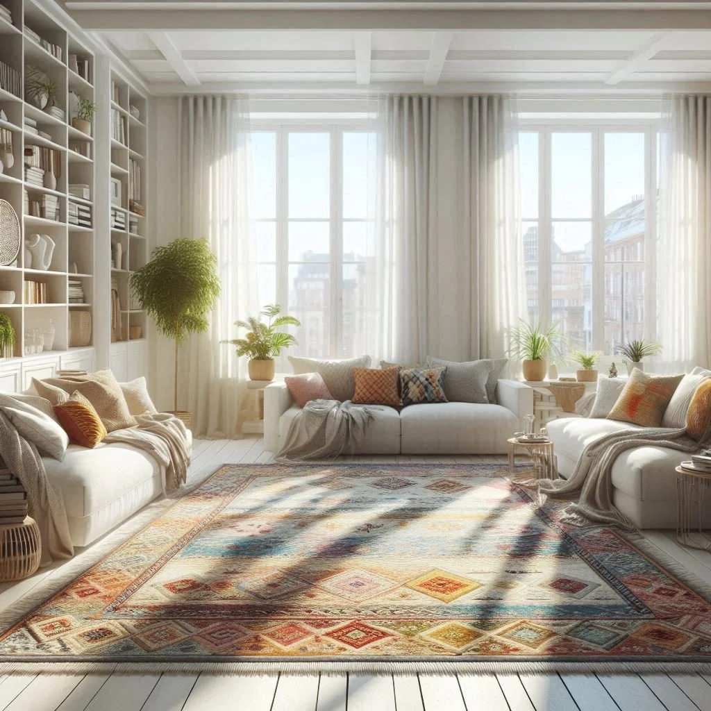 A statement rug is essential for grounding your living room and adding warmth to the space. When choosing a rug, pay attention to textures and patterns that complement your white decor. A large, colorful area rug can serve as a striking focal point, infusing energy into the room, while a softer pattern can introduce subtle interest without overpowering the aesthetic. It's crucial to consider the scale of the rug in relation to your furniture; an oversized rug can create a cozy, inviting atmosphere, while a smaller one might feel lost in the space. Aim for at least the front legs of your seating to rest on the rug to enhance the cohesive look. Ultimately, a well-chosen rug not only enhances the visual appeal of your living room but also adds comfort and warmth, making it a welcoming retreat for family and friends.