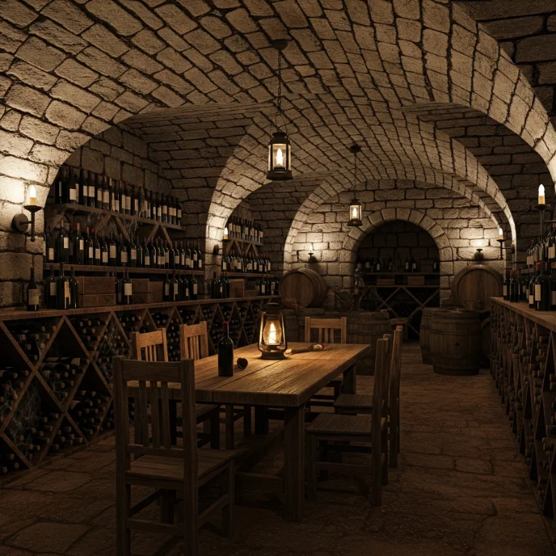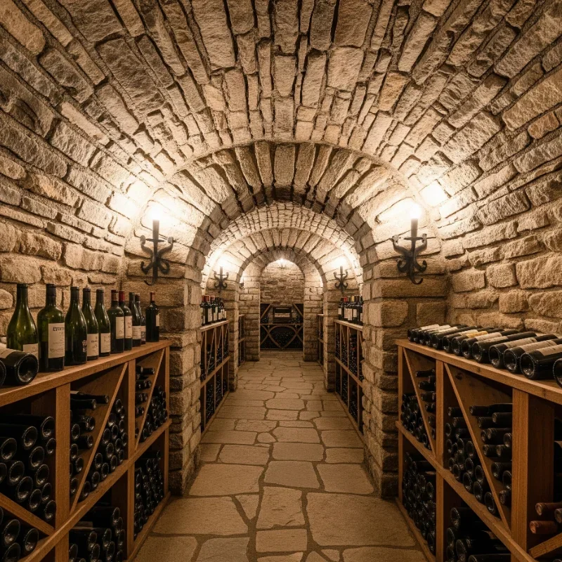 Embrace the romance of old-world wine storage with an underground stone cellar that naturally maintains ideal conditions! These subterranean sanctuaries use the earth's natural insulation to keep temperatures steady year-round without heavy reliance on mechanical systems. Stone walls, whether natural fieldstone or carefully laid brick, create authentic atmosphere while managing humidity perfectly. The underground location eliminates UV light exposure, protecting your wines from premature aging. Arched ceilings add architectural drama while maximizing storage space along curved walls. Install wrought iron gates and antique-style lighting fixtures to enhance the medieval castle ambiance. The naturally cool environment means lower energy costs compared to above-ground climate-controlled rooms. Add a rustic wooden tasting table and barrel furniture to complete the Old World experience. This timeless design appeals to traditionalists who appreciate wine storage methods perfected over centuries. The result feels less like a storage room and more like discovering a hidden treasure vault.
