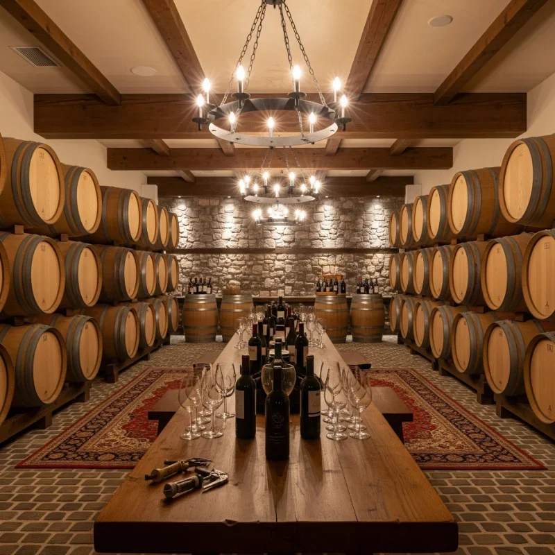 Transport yourself to Napa Valley with a barrel room design that celebrates wine's agricultural roots! Incorporate authentic wine barrels as functional furniture, from tables to storage units, creating an immersive vineyard experience. Use reclaimed wood from actual wineries for racking, bringing genuine history into your home. Exposed beam ceilings and rough-hewn wood walls enhance the rustic charm while providing excellent insulation. Display vintage winemaking tools as art pieces, connecting your space to centuries of tradition. Install barrel stave chandeliers or pendant lights for atmospheric illumination that casts warm, inviting shadows. The organic materials naturally regulate humidity, creating ideal storage conditions without feeling clinical. Add a stone or concrete floor for authentic winery aesthetics and easy maintenance. Include a barrel-top tasting area where friends can gather for impromptu tastings. This design celebrates wine's journey from grape to glass, making every visit feel like a countryside escape.