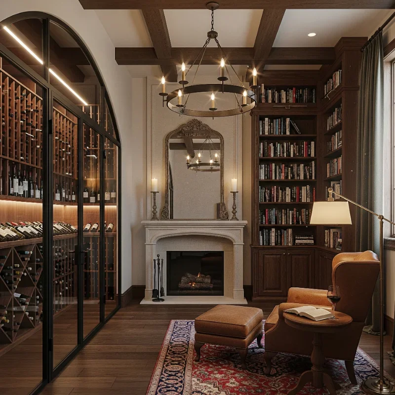 Merge your love of wine with literature by creating a combination wine library that satisfies multiple passions! Floor-to-ceiling shelving accommodates both books and bottles, creating an intellectual sanctuary for contemplation and enjoyment. Design custom units with adjustable shelves that adapt to various bottle and book sizes. Include a comfortable reading chair and side table where you can enjoy both a good book and perfect glass. The dual-purpose room maximizes space efficiency while creating unique ambiance found nowhere else. Climate control systems work for both collections, maintaining optimal conditions for paper and wine preservation. Add a rolling ladder for accessing high shelves, adding functional charm reminiscent of grand libraries. Use bookends shaped like wine bottles or literary-themed wine accessories to bridge both interests. This combination creates the ultimate retreat for quiet evenings of reading and sipping. The room becomes a personal sanctuary celebrating life's refined pleasures.
