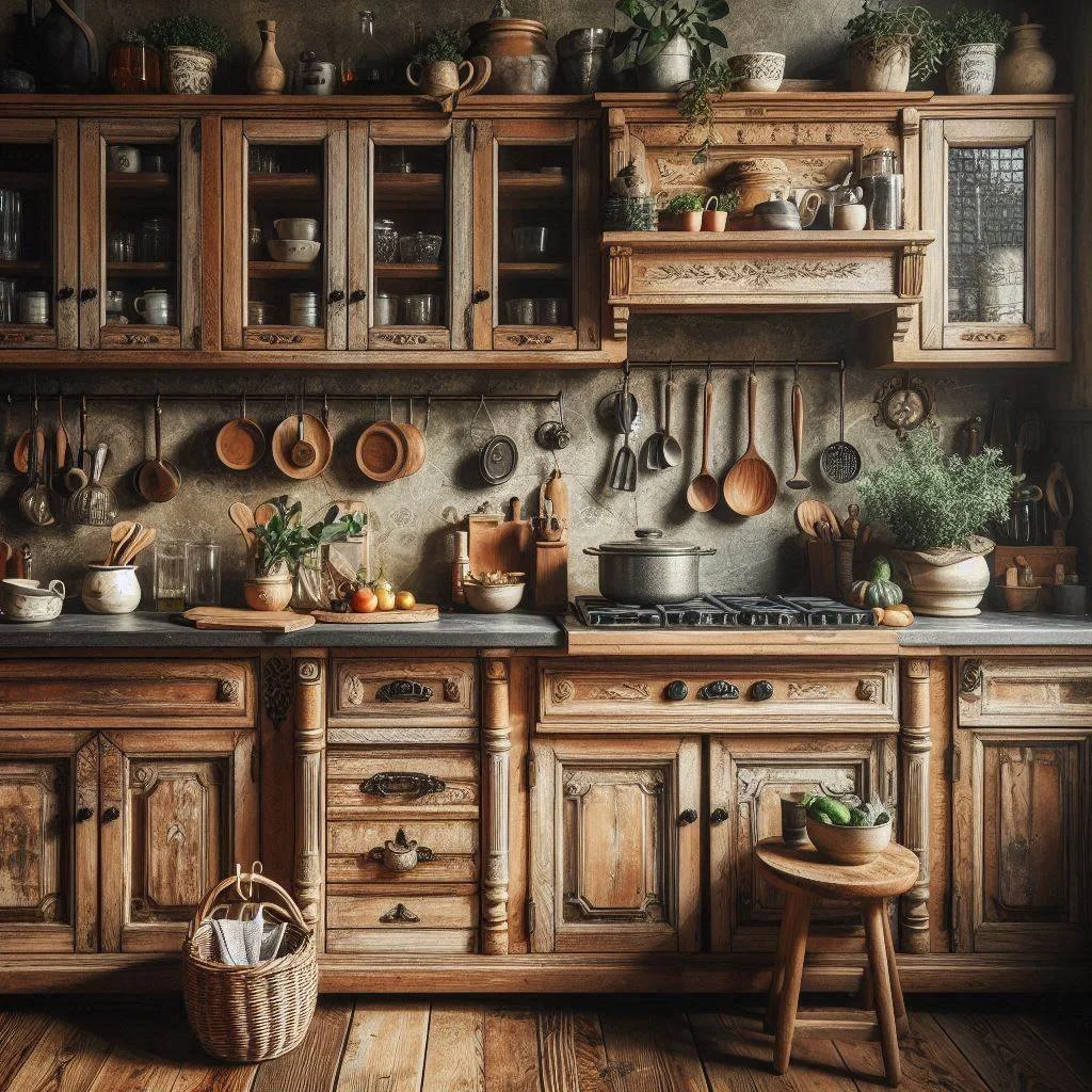 Distressed wood cabinets bring a sense of nostalgia and warmth to a kitchen, with their weathered, time-worn appearance evoking an antique charm that’s perfect for rustic or country-style spaces. These cabinets have subtle imperfections—like nicks, faded spots, and rough edges—that add a lived-in feel, giving the room character and depth. Distressing techniques can range from light scuffing to a more heavily aged finish, allowing you to tailor the look to fit your style. Paired with vintage-inspired hardware, like wrought iron or brushed brass handles, distressed wood cabinets create a kitchen atmosphere that feels cozy, inviting, and uniquely personal, making every meal feel like a step back in time.