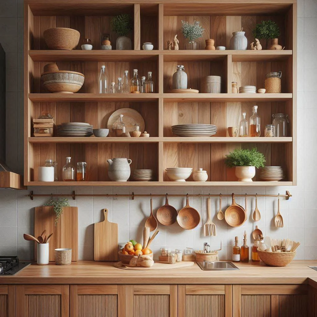 11. Open-Shelf Wood Cabinets for a Casual Look