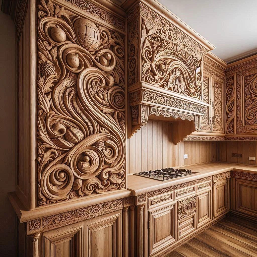 Custom-carved cabinets are a fantastic way to elevate your kitchen with artistry and personality. These cabinets allow for intricate details, from elegant floral motifs to bold geometric patterns, making your space truly unique. Each carving is tailored to your vision, creating cabinetry that reflects your style, whether it's traditional, modern, or somewhere in between. Custom carvings can add texture and depth, transforming simple wood into a captivating design element that doubles as a conversation piece. They’re perfect for those looking to blend function with aesthetics, offering both practical storage and visual appeal. With custom-carved cabinets, your kitchen becomes a one-of-a-kind masterpiece, filled with personal touches that set it apart from any other space.