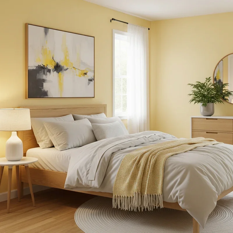 Paint your walls in the gentlest butter yellow for an instant mood boost that feels like perpetual morning sunshine! This delicate shade works like a warm embrace, creating a cozy cocoon without overwhelming the space. Unlike bolder yellows, butter yellow plays well with virtually any decor style, from minimalist to maximalist. It reflects natural light beautifully during the day while maintaining a soft glow under artificial lighting at night. Pair it with crisp white trim and ceiling for a classic look that never goes out of style. The subtlety means you can go bold with furniture and accessories without creating visual chaos. This shade particularly shines in north-facing rooms that need extra warmth or smaller bedrooms that benefit from its space-expanding properties. Your walls become a canvas of optimism that whispers rather than shouts, perfect for creating a serene sleeping environment.
