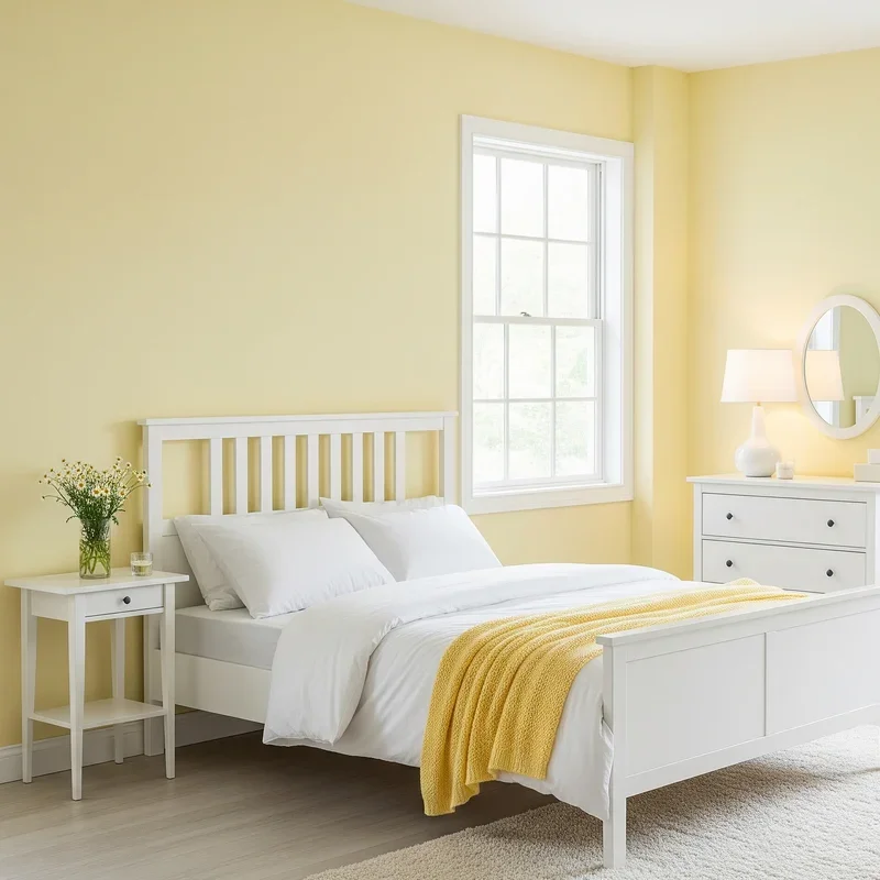 A: Light yellows can make small bedrooms appear larger and brighter than darker color choices.