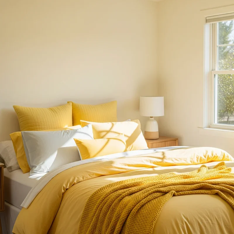 Transform your bedroom instantly with sunny yellow bedding that becomes the star of your sleep sanctuary! Choose from solid yellow duvets for maximum impact or patterns featuring yellow for a more subtle approach. Mix different shades of yellow pillows to create depth and visual interest on your bed. The beauty of yellow bedding is its versatility; swap it seasonally or when you crave change without repainting. Layer textures like smooth cotton sheets with chunky knit throws in complementary yellows for a luxurious feel. This approach works especially well in neutral rooms that need a pop of personality. Your bed becomes a bright island of happiness that draws you in after long days. Plus, yellow bedding photographs beautifully for those inevitable bedroom selfies and morning coffee in bed moments!