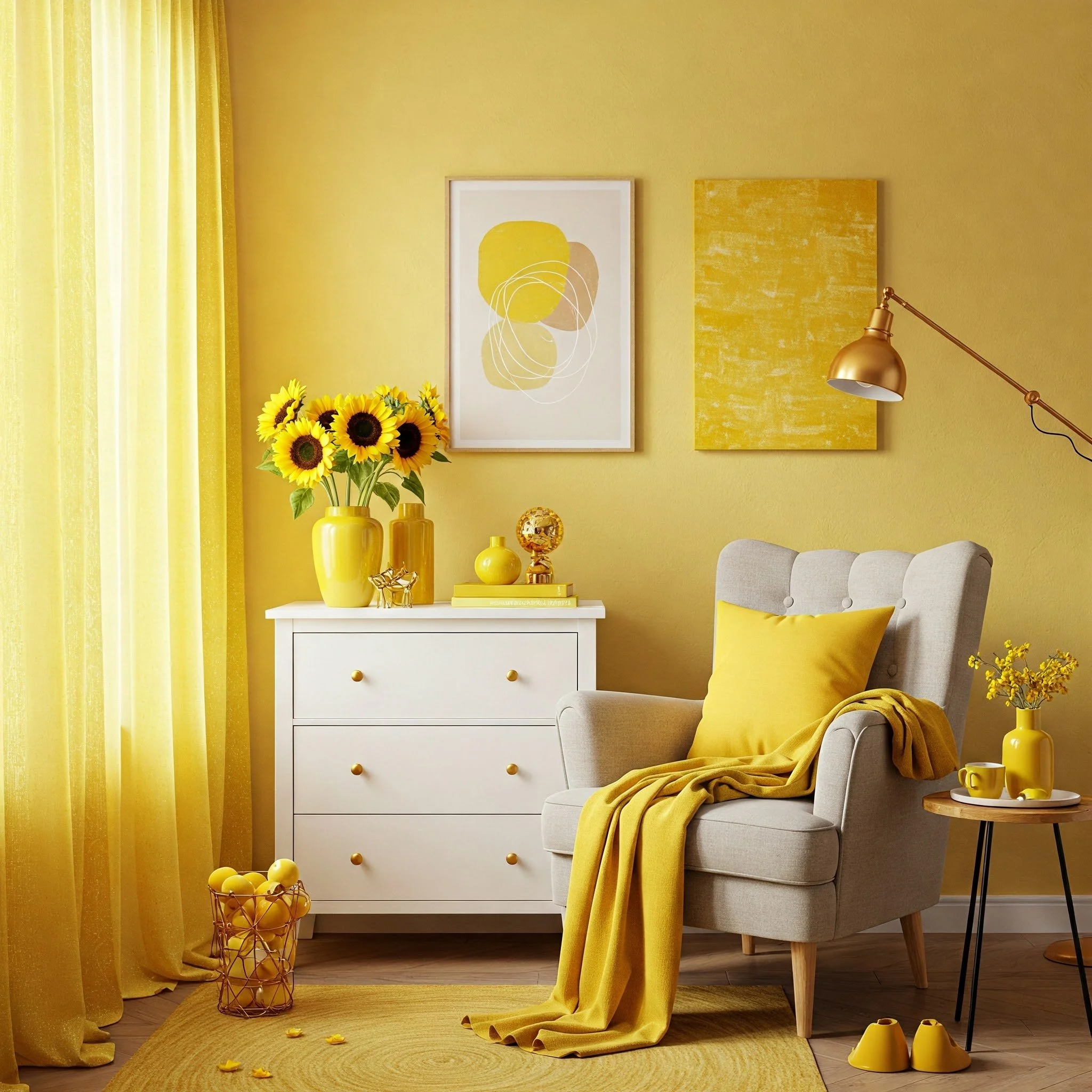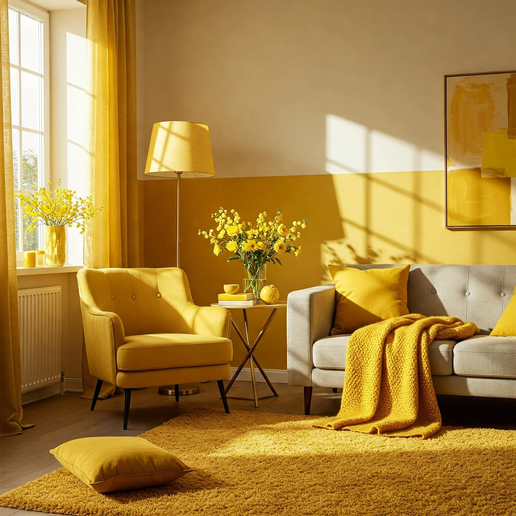If you’re hesitant about painting or you’re a renter with restrictions, textiles can be your best friend. You’d be amazed how a few well-chosen throw pillows, curtains, or rugs in varying shades of yellow can instantly liven up a room. A plush, sunflower-toned rug on a hardwood floor can act like a personal patch of sunshine that greets your toes every morning.