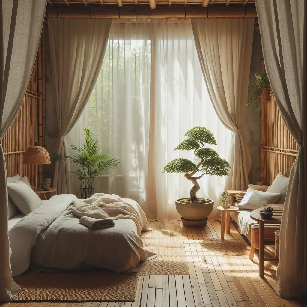 Low-maintenance indoor plants like succulents, snake plants, and peace lilies are ideal for a Zen bedroom. These plants improve air quality and add a calming touch of nature to your space.