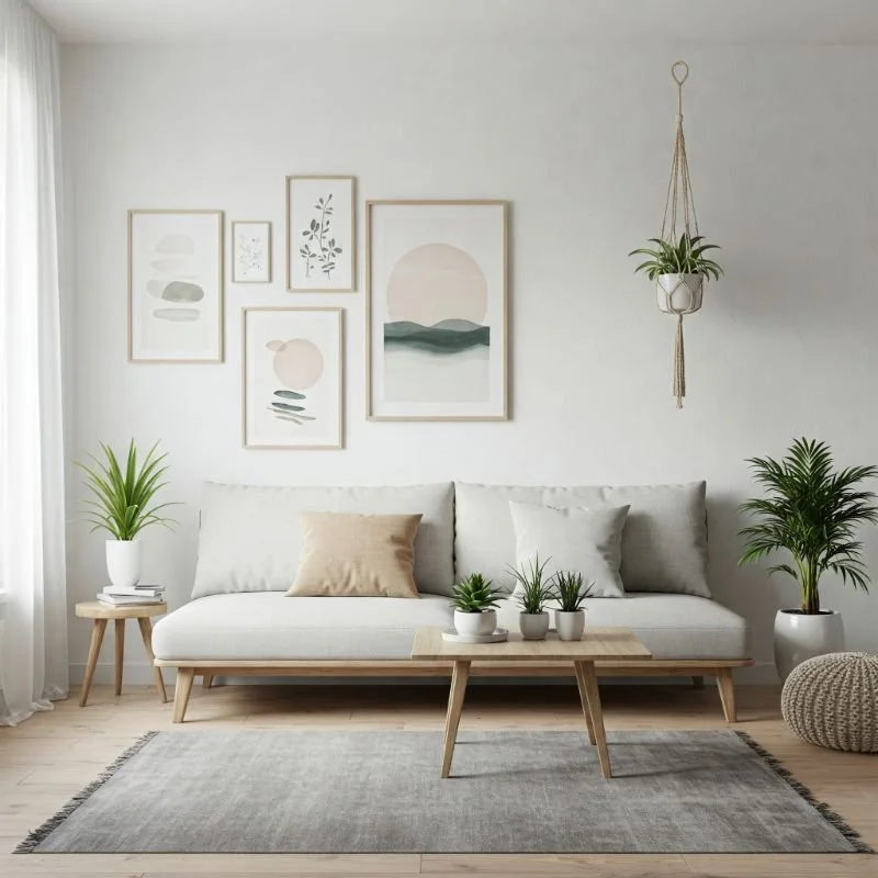 Consider using wall-mounted planters, small potted succulents, or a single statement plant to bring nature indoors without overwhelming your space. Natural materials like bamboo and stone accents can also add an organic feel.