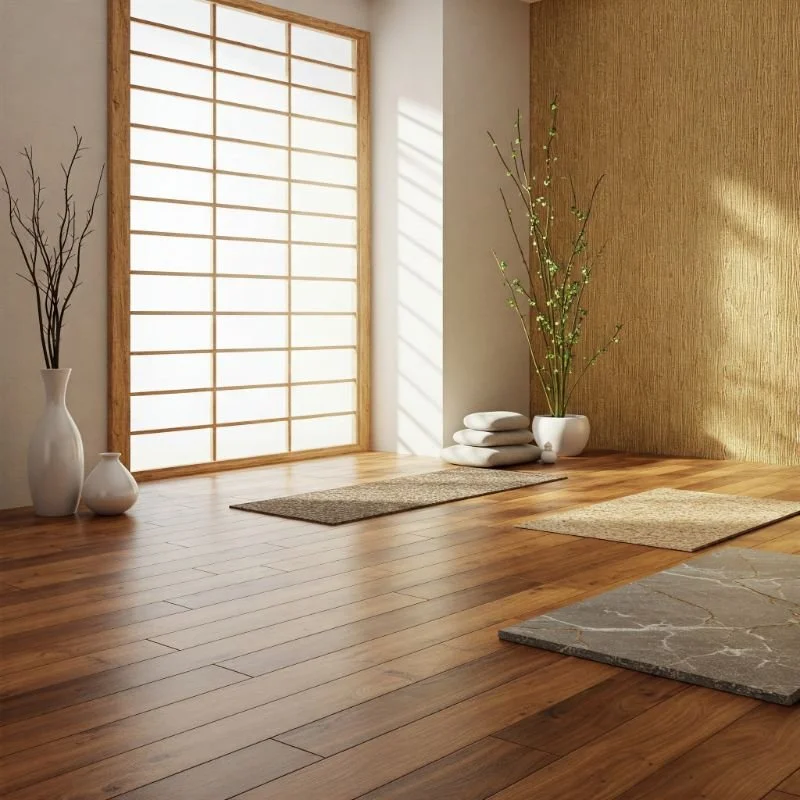 The foundation of any Zen room lies not just in its decor but also in its flooring, which sets the tone for comfort and calm. Imagine smooth, natural bamboo or warm, polished hardwood floors that invite you to walk barefoot and connect with the earth beneath you. Consider adding a soft area rug with subtle, nature-inspired patterns to enhance warmth and provide a tactile contrast against the smooth floor. The choice of flooring should resonate with the overall minimalist aesthetic, offering both durability and a sense of organic beauty. A well-chosen floor can ground your space, offering a serene pathway that leads you through your tranquil retreat. With surfaces that are both stylish and comfortable, your room becomes a haven of relaxation—a space where every step feels like a gentle journey into calm.